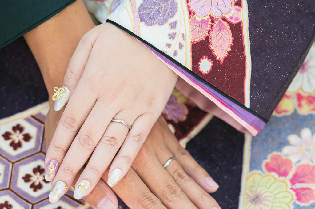 - ネイルチップはつけ外しができ、式が終わっても繰り返し使えます。